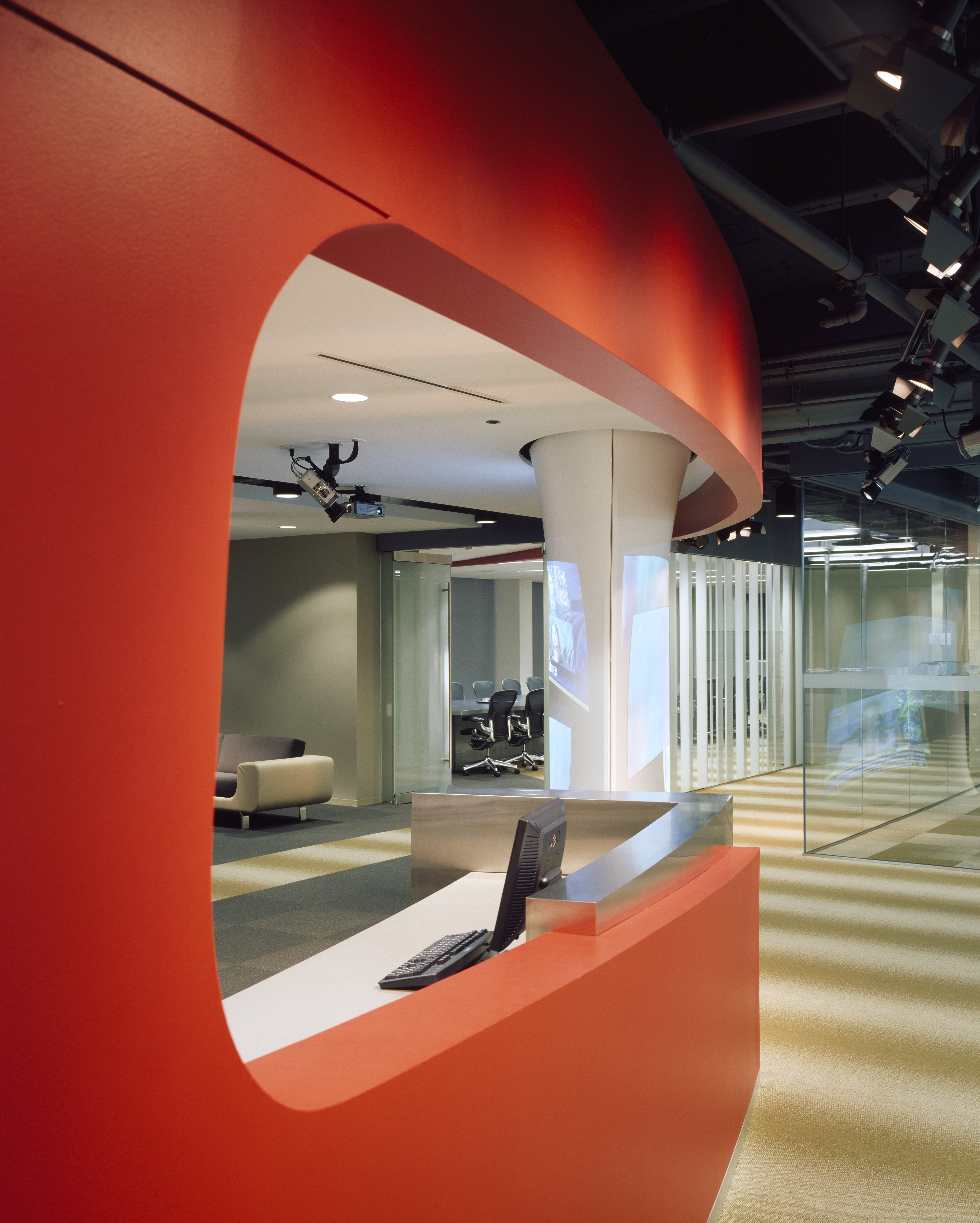 Following corporate mergers, the newly organized Comcast Spotlight sought to consolidate several existing offices to one central location. The resulting facility features office space, a master control center, editing suites, conference rooms, and teaming/ breakout spaces.