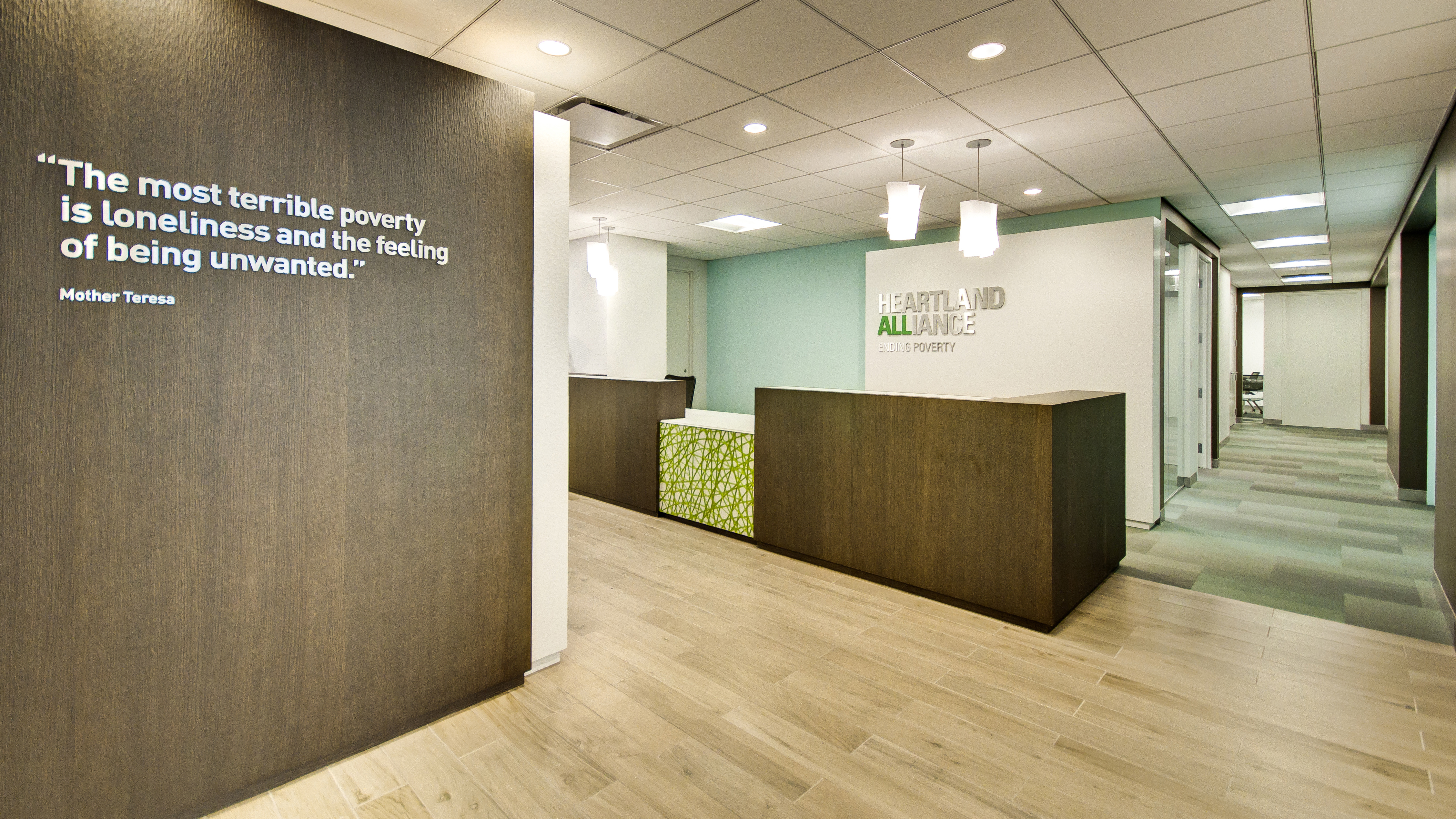 Heartland’s new office is modern and open. Bright colors lend a cheery atmosphere to the very serious work that the nonprofit does. The space offers many opportunities for meeting with clients and policymakers, from variable size conference rooms to private offices, Heartland’s new workspace truly offers a much more efficient and effective work environment for their employees.